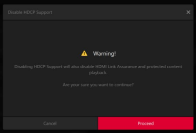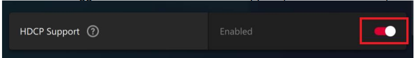 To resolve this issue, disable High-bandwidth Digital Content Protection (HDCP) in AMD Software. Follow the instructions to disable the HDCP.